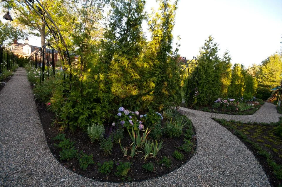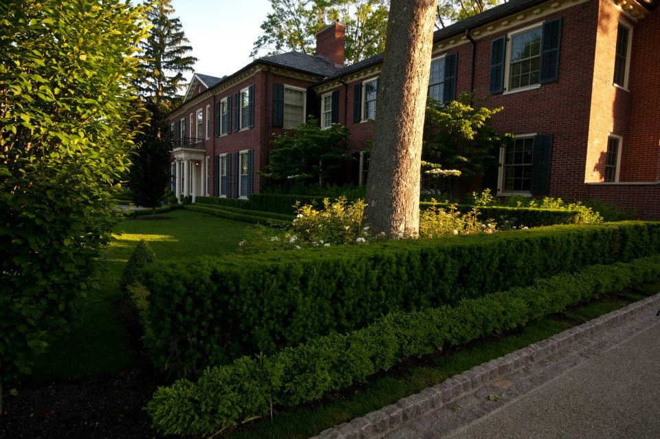 English formal gardens are known for their symmetry, geometric shapes, and carefully planned layouts that emphasize order and balance. Often featuring clipped boxwood hedges, gravel walkways, ornamental flower beds, and classical statuary, these gardens reflect a sense of harmony and refinement that dates back to the 16th and 17th centuries. For this estate, the client specifically requested a garden to reflect his fond memories of time spent living in europe. The design emphasizes the symmetry and classical proportions that define the style, while incorporating native plant selections to suit the local climate. Carefully pruned boxwood hedges form geometric parterres near the home, leading to a central fountain aligned with the main architectural axis. Beyond the formal areas, softened transitions introduce gravel terraces that echo the textures and tones of England, resulting in a landscape that is both elegant and deeply personal.